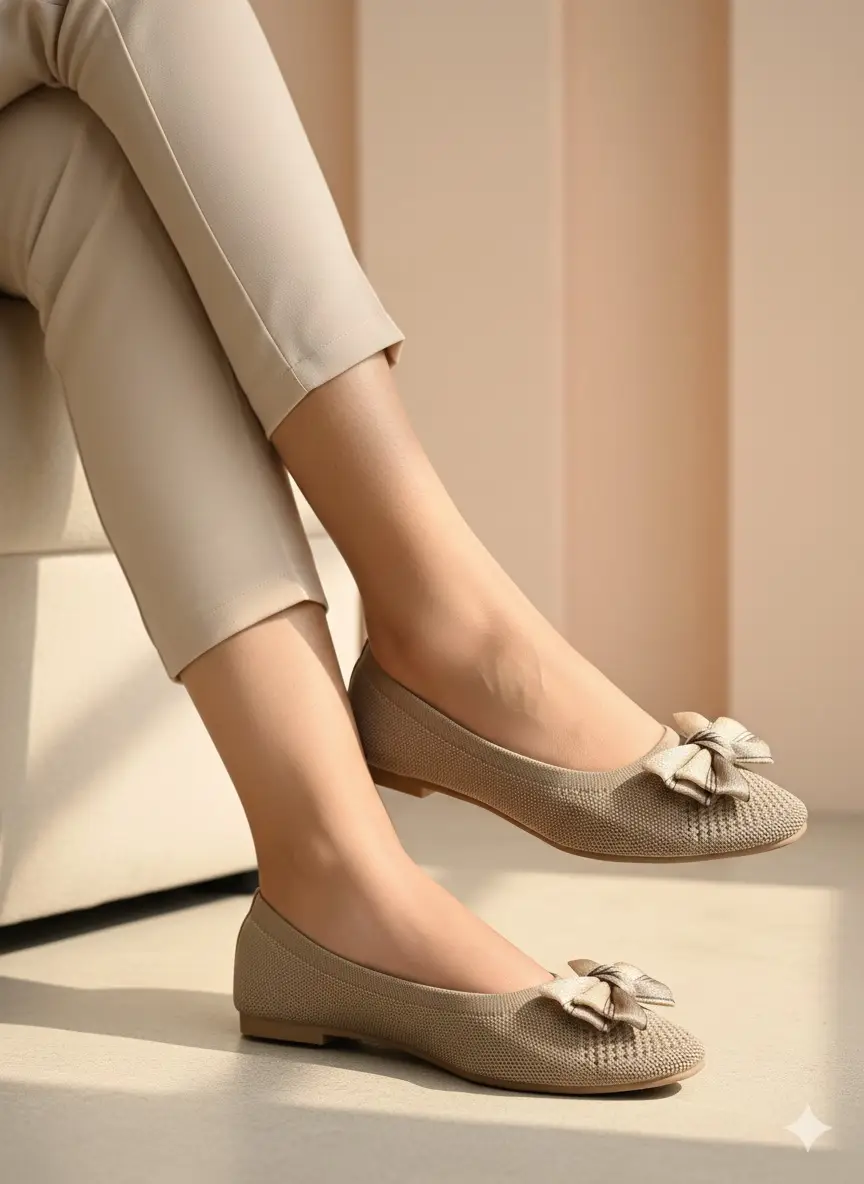 Add a touch of charm to your everyday look with these Elegant Beige Ballerina Flats. Designed with a breathable knit upper and finished with a premium dual-tone bow, these flats blend style, comfort, and durability — perfect for Indian weather and daily wear.