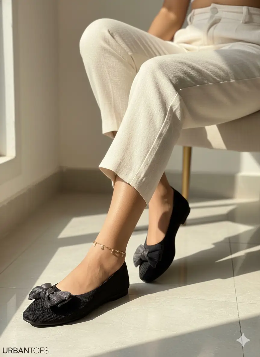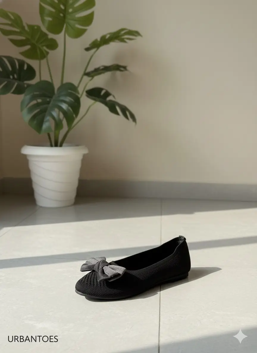 Add a touch of charm to your everyday look with these Elegant Black Ballerina Flats with Stylish Bow. Designed with a breathable knit upper and finished with a premium dual-tone bow, these flats blend style, comfort, and durability — perfect for Indian weather and daily wear.