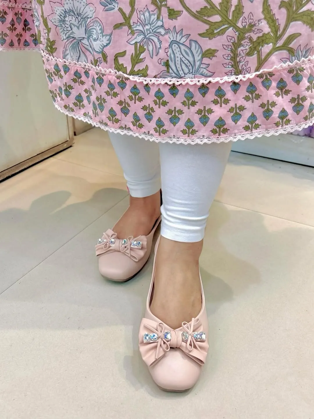 Graceful Comfort for Every Occasion Add a touch of feminine elegance to your footwear collection. These Peachy Blush Embellished Bow Ballerina Flats are crafted with a smooth matte finish in a versatile blush pink, making them a “go-to” pair for daytime events, office wear, or family functions where you want to look polished without the height of heels.
