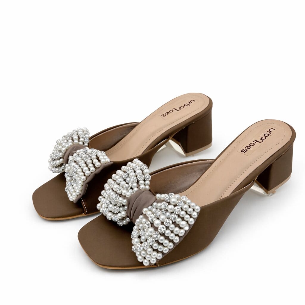 Add a touch of sophistication to your look with our Pearl Grace Block Heels Brown, designed for women who adore elegance with a modern twist. These stunning pearls brown heels feature a charming pearl-studded bow that instantly elevates your outfit — perfect for festive events, parties, or evening occasions.