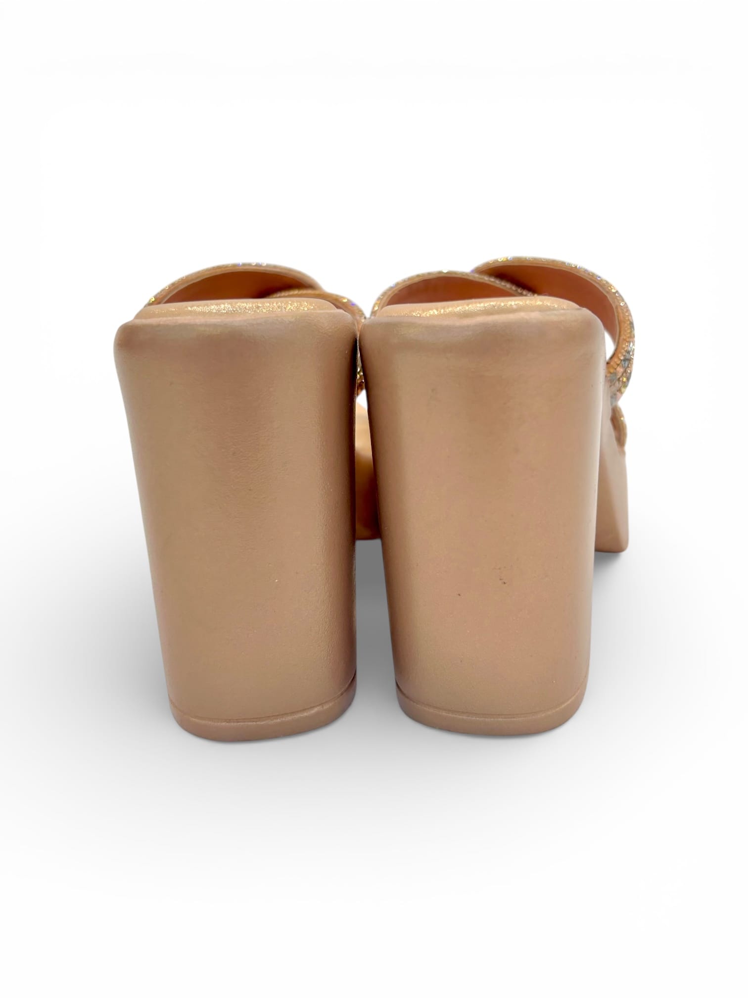 If you’re looking for statement party heels that combine comfort and luxury, these rose gold platform block heels are the perfect choice.
