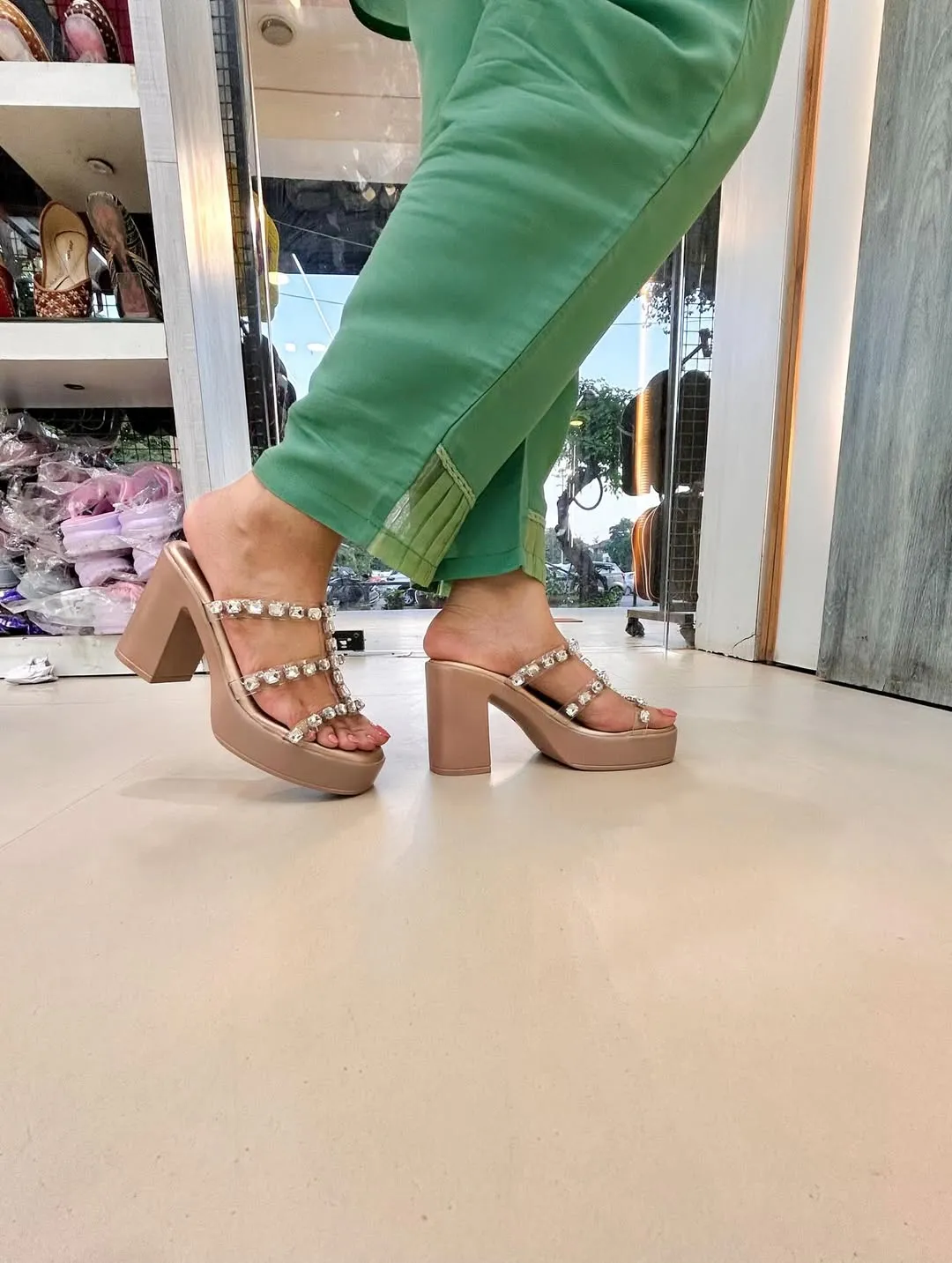 Stability Meets Stardust Experience the perfect height and high-fashion aesthetics with these stunning platform wedges. The clear “invisible” straps create a modern, minimalist silhouette, while the hand-placed crystals add a regal sparkle that complements heavy Indian ethnic wear and Western party dresses alike.