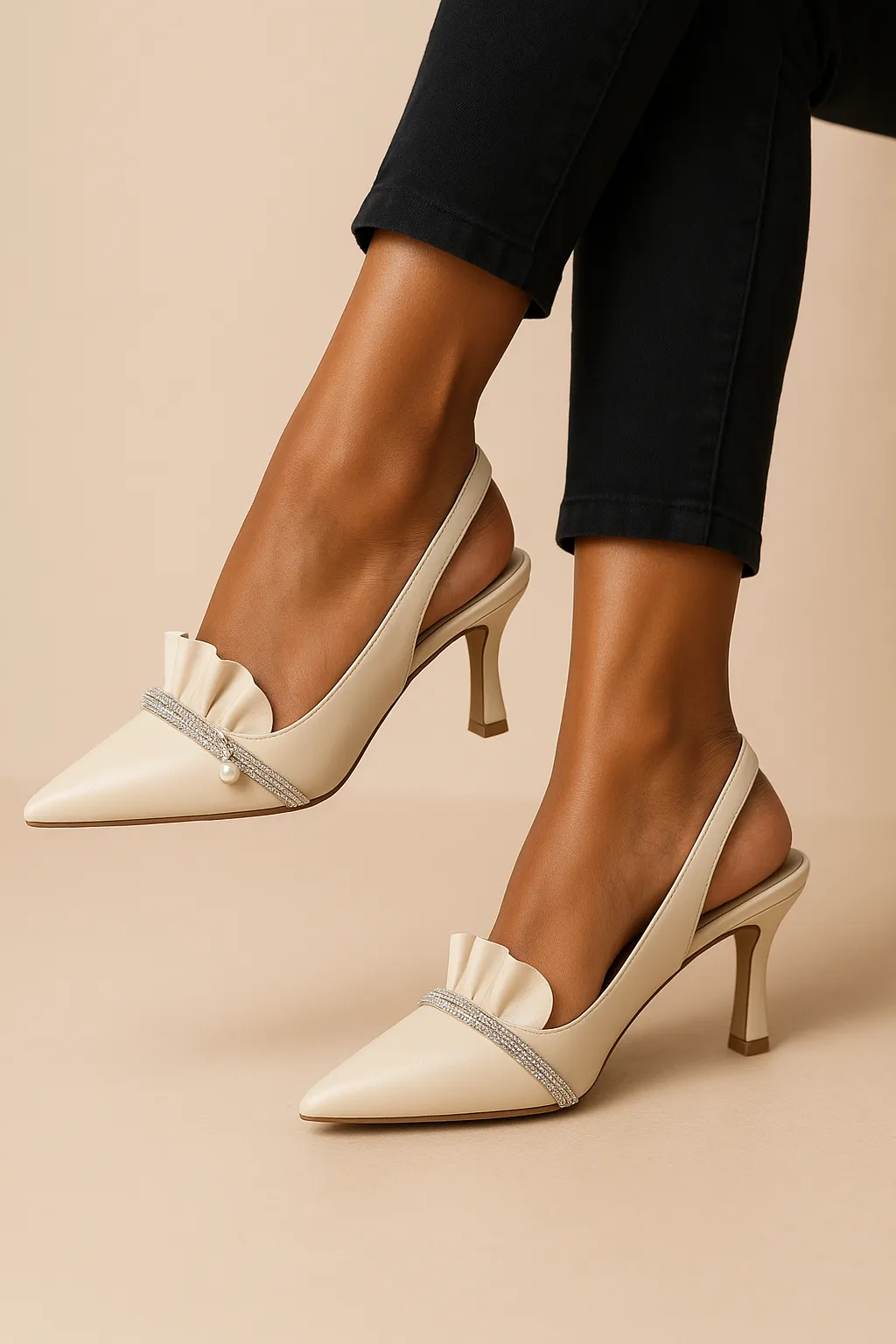 URBANTOES Elegant Ruffled Slingback Heels Cream