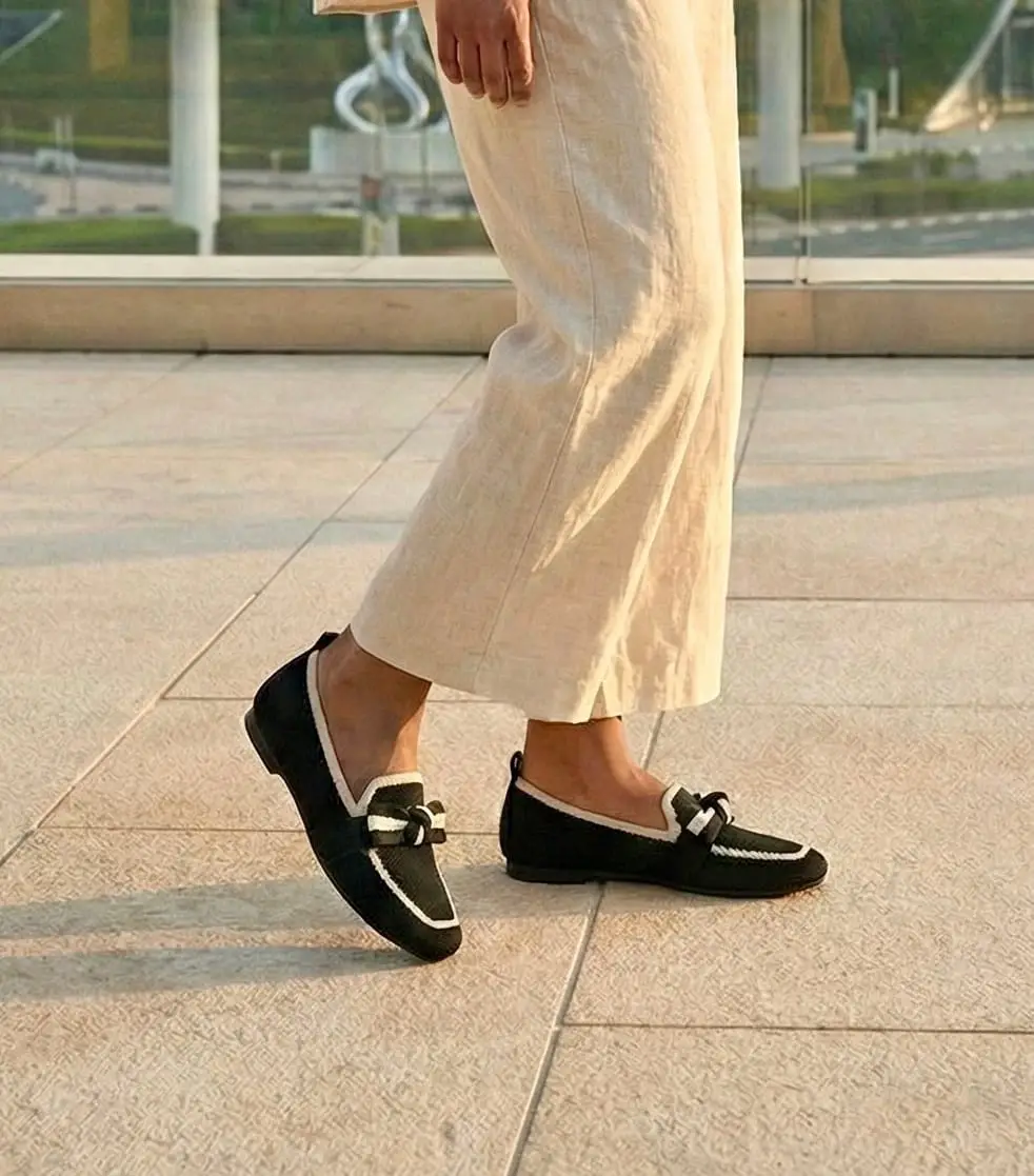 The elegant contrast stitching and signature front knot add a refined yet casual charm, making them perfect for city strolls, travel, and daily wear. A cushioned footbed and lightweight sole provide dependable comfort, whether you’re exploring outdoors or enjoying long hours on your feet.