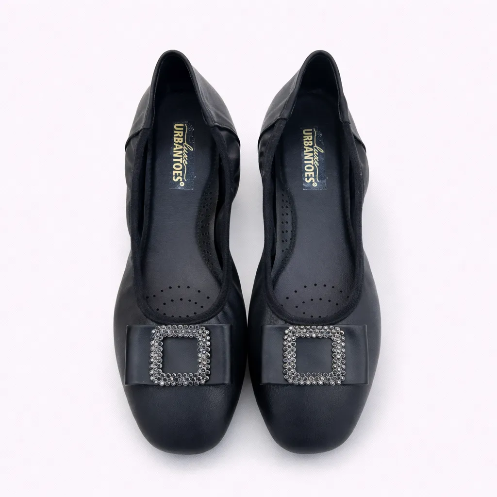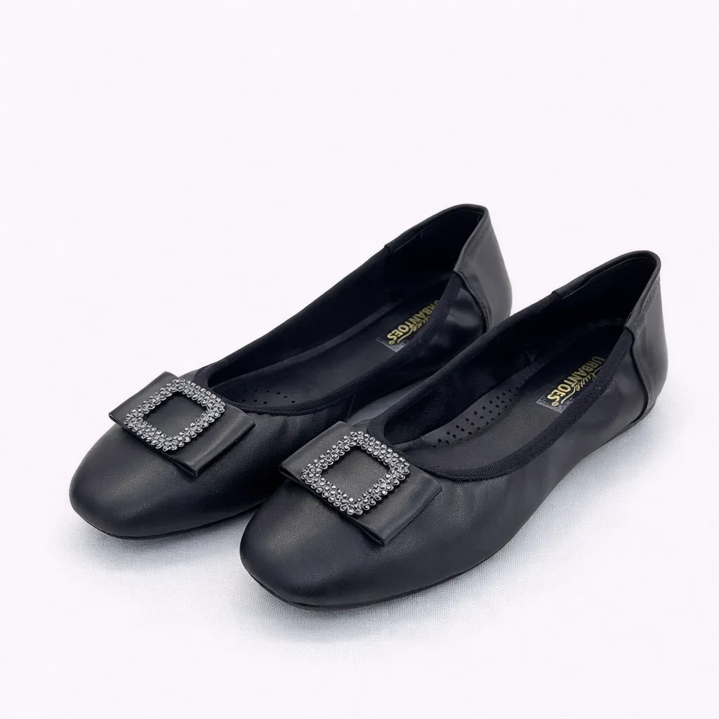 Add subtle elegance to your everyday style with these women’s black stone embellished flats. Designed with a smooth finish and decorative stone detailing on the front, these flats offer a perfect balance of comfort and style.