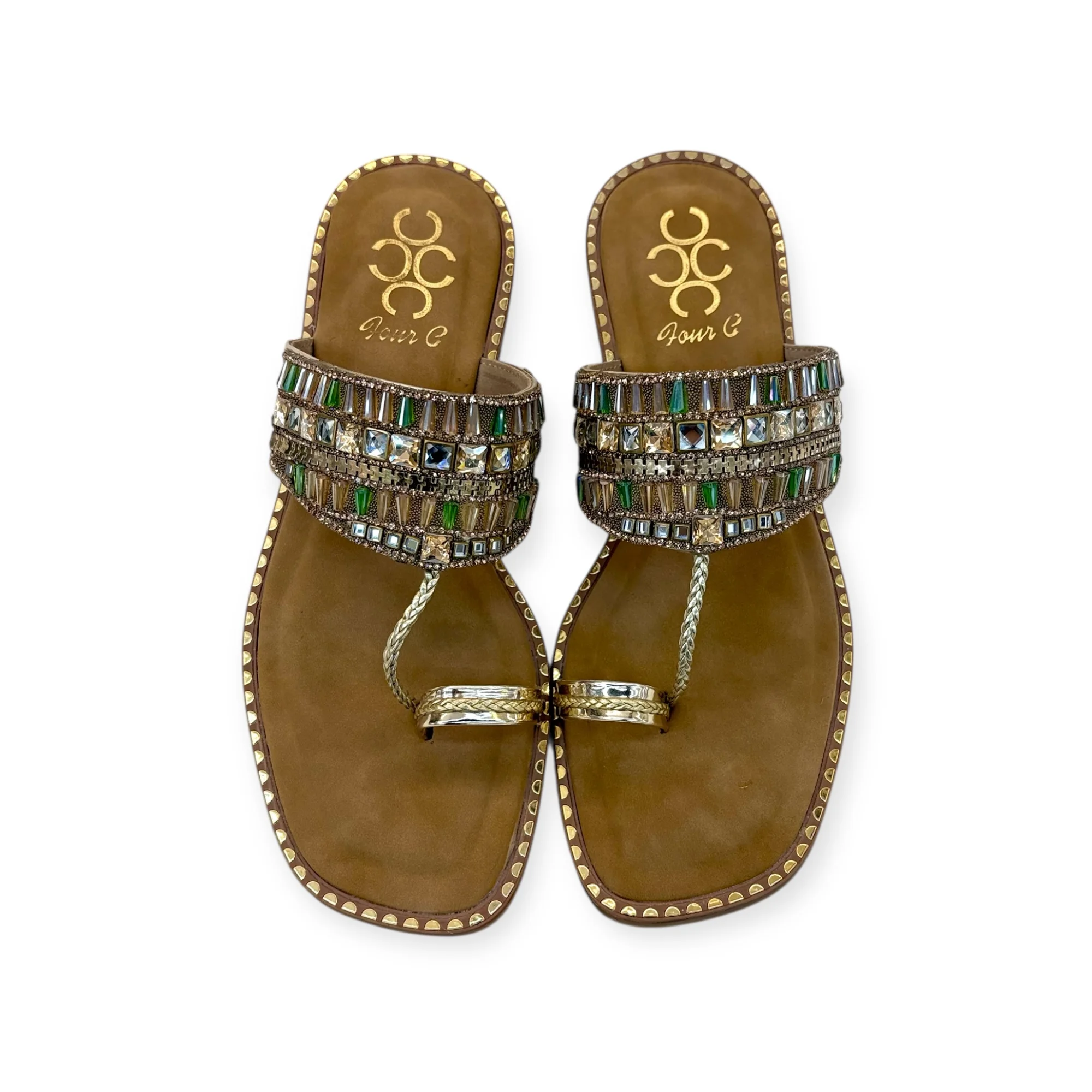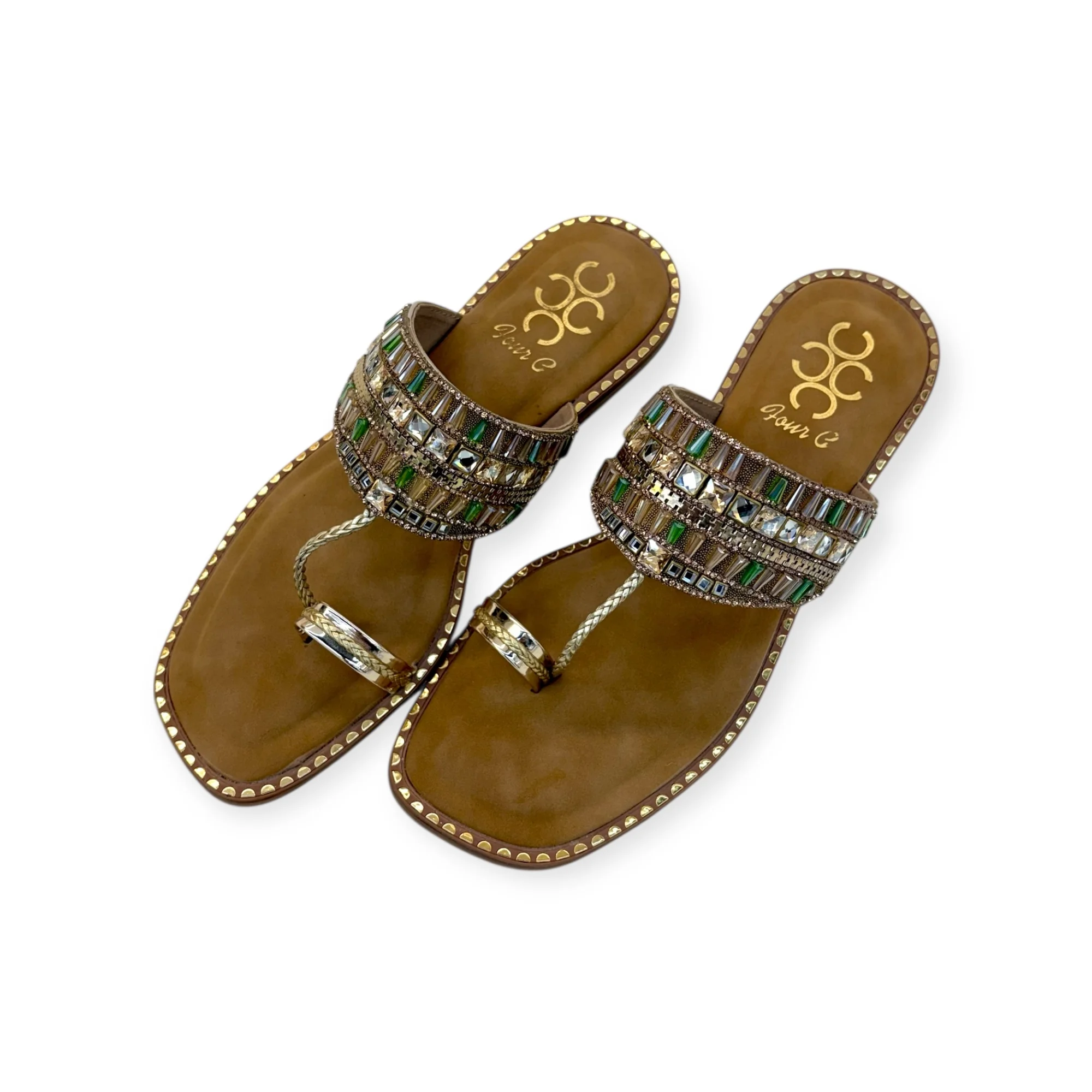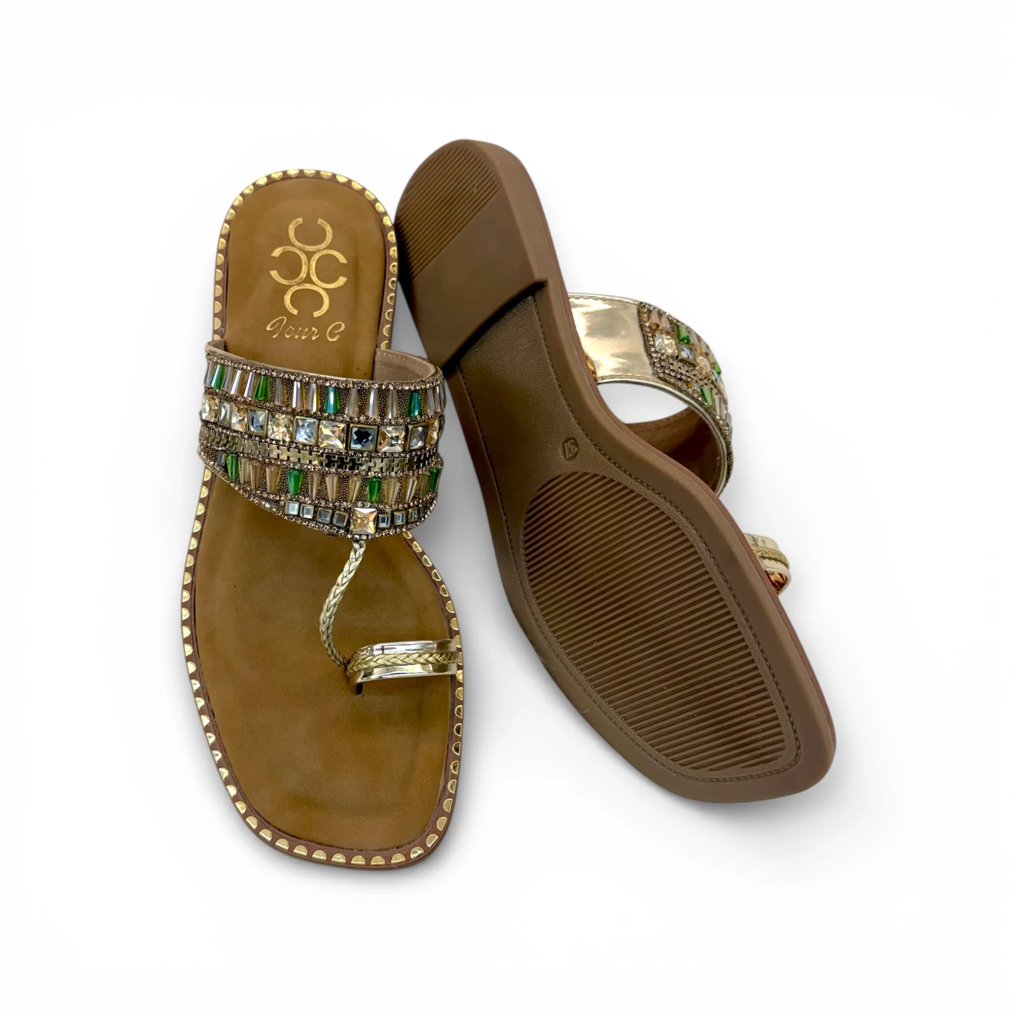 • Upper Material: Synthetic with green & crystal stones