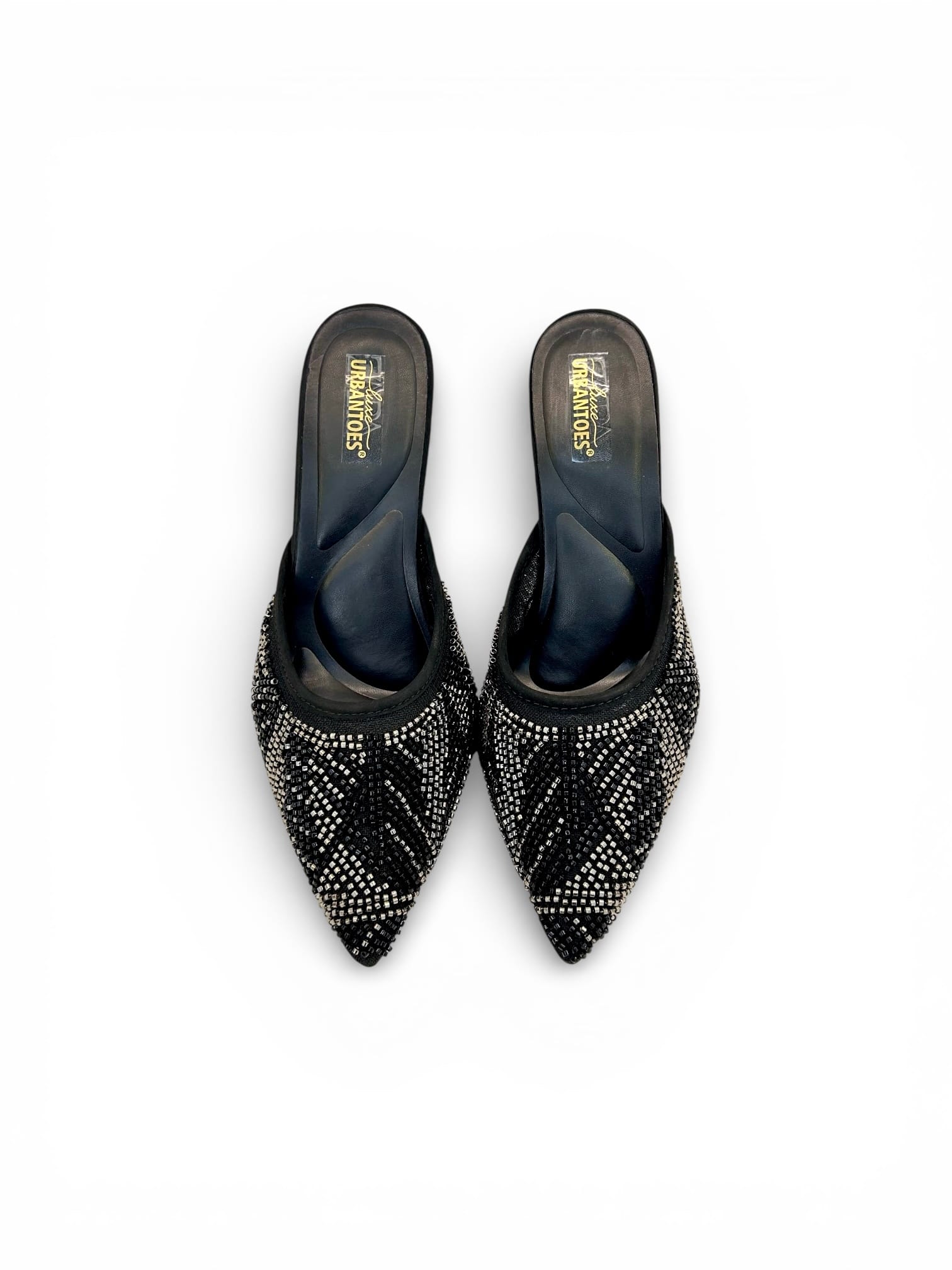 Add instant elegance to your look with these women’s black embellished mule heels, designed for effortless style and comfort. Featuring a closed pointed toe with net and beads detailing, these mule heels bring a luxurious touch to both festive and evening outfits.